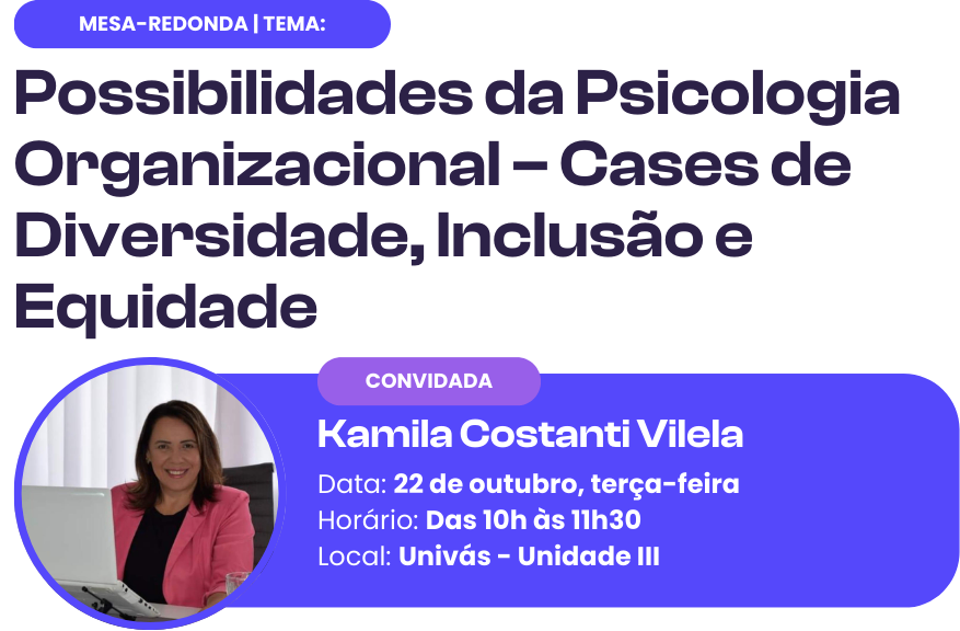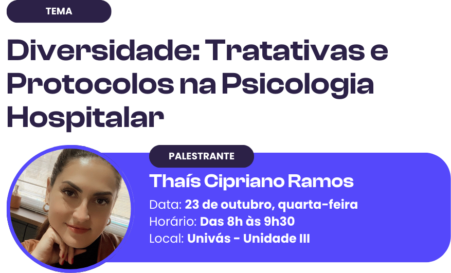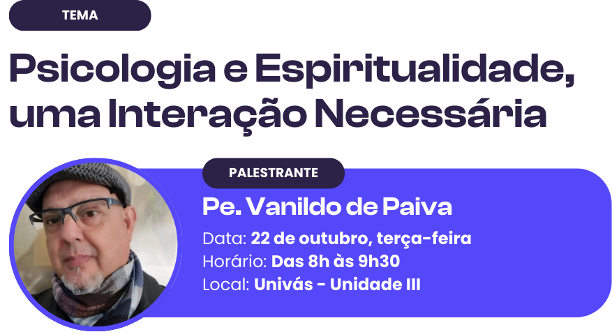 O Curso de Psicologia da Univás convida você para o 10º Congresso de Psicologia, com o tema: "Pluralidades e Diversidades: Caminhos para uma Prática Ética". O evento será realizado nos dias 21, 22 e 23 de outubro, com atividades em diversos formatos – presenciais e on-line.